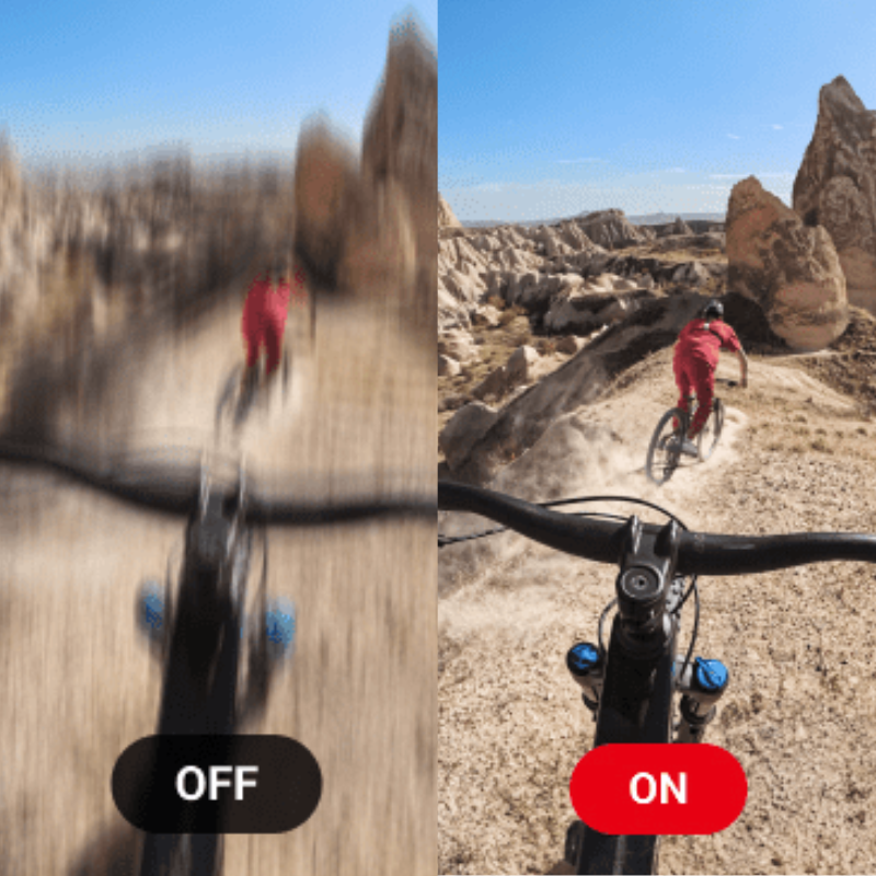 Yes. DualPOV includes Electronic Image Stabilisation (EIS) to reduce bumps and vibration during MTB, skiing, or motorbike riding.